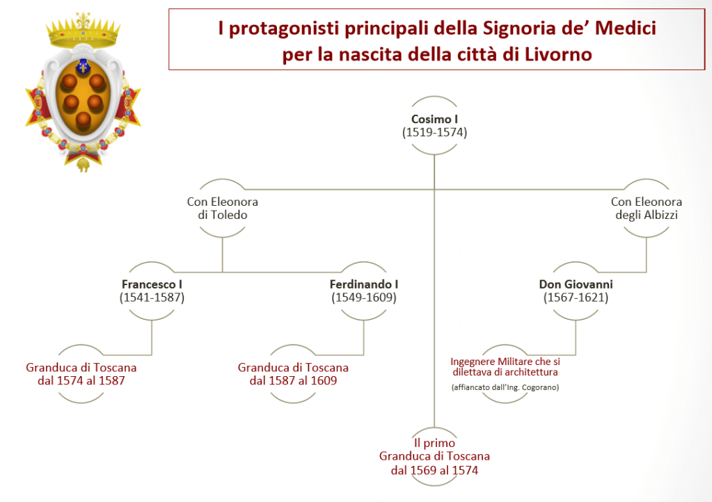 Lo sviluppo della città in questo periodo deriva da una serie di politiche economiche sposate con un accurato piano strutturale e caratterizzate dall’originalità insita nell’apertura cosmopolita dettata soprattutto dalle Leggi Livornine del 1591. Insieme allo status di Livorno come porto franco e le politiche influenti di Ferdinando, le Leggi Livornine portarono a un’esponenziale crescita demografica della popolazione che passò dai 530 abitanti del 1591 a 4000 in appena quindici anni, nel 1606: l’anno appunto dell’elevazione di Livorno a città, una città cosmopolita, multirazziale e multireligiosa, unica e originale tra le città figlie del Cinquecento.