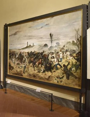 Conservata presso il museo civico di Villa Mimbelli, l’opera di Giovanni Fattori (1825-1908) del 1862 nota come Un episodio della battaglia di Montebello 1859 o Carica di cavalleria a Montebello (un olio su tela di dimensioni 204×290 cm) raffigura un episodio dell’omonima battaglia (20 maggio 1859), in cui l’esercito austriaco subì una prima sconfitta da parte di quello franco-piemontese. La tela fu realizzata tra gli anni 1861 e 1862 grazie a una sottoscrizione cittadina: la commissione, cioè, avvenne per l’iniziativa di un gruppo di cittadini che raccolse i fondi necessari alla sua esecuzione. Consegnato ai sottoscrittori alla fine del 1863, il dipinto fu da essi offerto al Comune di Livorno per la costituenda Pinacoteca Civica, in cui da allora l’opera è sempre stata fruibile. Solamente più di un secolo dopo, tuttavia, è venuta alla luce la sorpresa che il celebre dipinto celava.