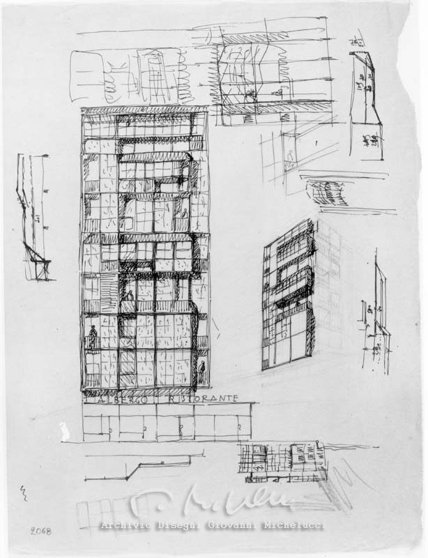 Come testimoniano i numerosi disegni ad opera di Michelucci, il progetto del grattacielo subì diverse modifiche anche in corso d’opera: ad esempio, la parte della torre era stata concepita più esile di come poi sarebbe stata costruita, ripensata come la vediamo oggi per armonizzarsi meglio col contesto urbano; in ogni fase era però chiara la destinazione d’uso delle diverse parti dell’opera.