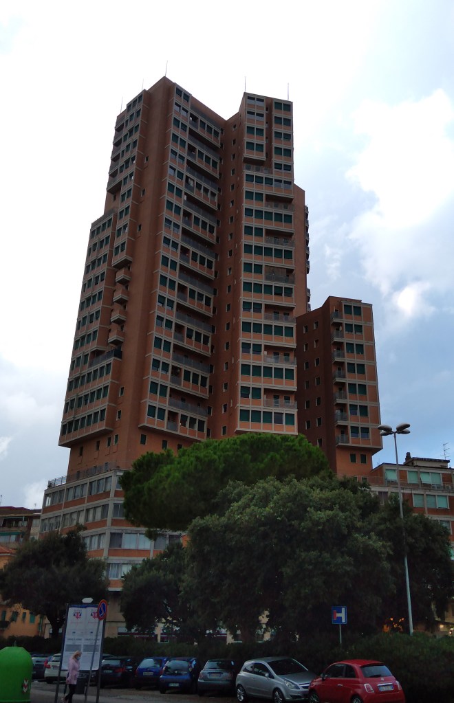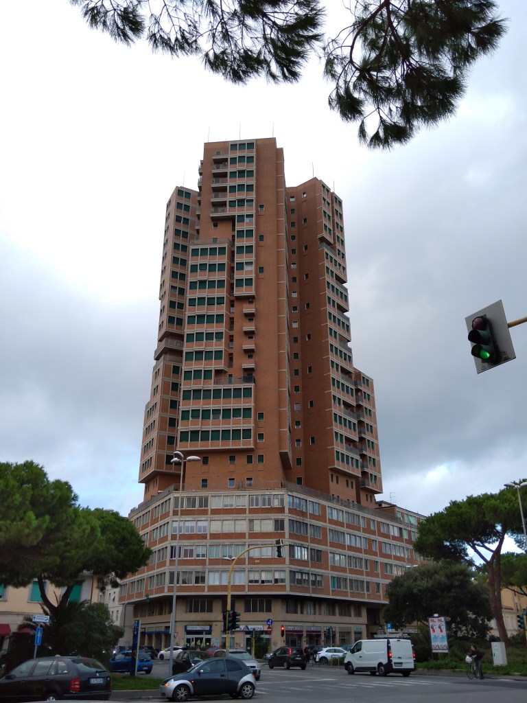 Svetta al disopra di tutti gli altri edifici labronici, lo si distingue nitidamente da terra o dal mare: è il grattacielo di Piazza Matteotti, principe dello skyline di Livorno. Nonostante che con i suoi 96 m di altezza sia tuttora il grattacielo più alto della Toscana e nonostante che porti la firma illustre di Giovanni Michelucci (1891-1990), l’opera rimane ancora oggi una delle meno analizzate del suo autore: molto spesso in città è stata criticata da più parti, probabilmente senza comprenderla del tutto, forse anche sulla scia di quel pensiero di diversi intellettuali di epoca postbellica, secondo cui la costruzione di edifici tipologicamente “moderni” avrebbe minato a priori l’equilibrio del contesto.