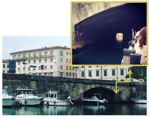Nel 1894 su progetto di Angiolo Badaloni si realizza il mercato coperto delle vettovaglie; esso fu ubicato lungo il fosso circondario e pensato con quella antica logica di scarico e deposito delle merci a livello dell’acqua, oltre che a livello terrestre. Se lo si guarda dal lato del canale possiamo osservare la doppia apertura (livello fosso e livello strada).