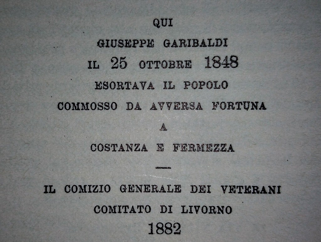 Ancora una volta, ad esempio, ci saremmo potuti imbattere in una traccia del passaggio in città di Giuseppe Garibaldi: una targa all’allora civico n. 28 (corrispondente più o meno all’odierno 150) – “ove ora è la sede della Banca Tirrena” – ci ricordava di un discorso esortativo da lui rivolto al popolo in quel punto.